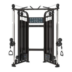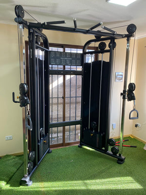 Esta diseñada con dos poleas laterales ajustables, que puedes regular en altura y ángulo. Incluye dos stack de placas que van desde los 5 kg a 80 kg de peso integrado, que podrás configurar según tus requerimientos.