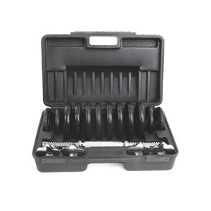 Incluye 12 discos de gran calidad, que pueden ajustarse de acuerdo a tus requerimientos, solo debes acoplar los discos con la barra, bloquearlo con las tuercas y listo, tienes un par de mancuernas de fácil armado con un ajuste seguro, garantizando la comodidad en tu entrenamiento.