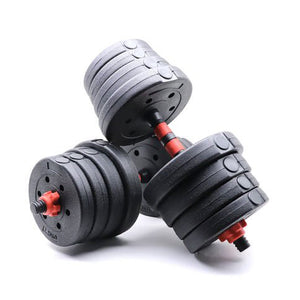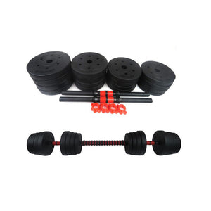 El set de mancuernas ajustable te permite disfrutar de un entrenamiento usando varios pesos en un solo implemento. Posee un mecanismo fácil de usar que te permite asegurar o quitar pesos rápidamente. Esta fabricado de caucho duro de primera calidad con arena de cemento que es un material no tóxico, respetuoso con el medio ambiente y ultra duradero y resistente, a prueba de óxido. En sus extremos incluye collarines de bloqueo de estrella brindan un entrenamiento seguro y fácil.