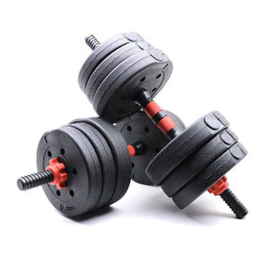 El set de mancuernas ajustable te permite disfrutar de un entrenamiento usando varios pesos en un solo implemento. Posee un mecanismo fácil de usar que te permite asegurar o quitar pesos rápidamente. Esta fabricado de caucho duro de primera calidad con arena de cemento que es un material no tóxico, respetuoso con el medio ambiente y ultra duradero y resistente, a prueba de óxido. En sus extremos incluye collarines de bloqueo de estrella brindan un entrenamiento seguro y fácil.