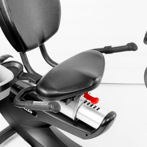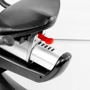 La bicicleta Estática Pro N25 se destaca por poseer un asiento amplio, cómodo, con respaldo y ajustable que permite acercar o alejar el asiento del volante, reduciendo la presión sobre las rodillas. Los controles de resistencia se encuentran en su mango lateral derecho a un costado del asiento, permitiendo ajustar su nivel de intensidad de forma rápida y sencilla.